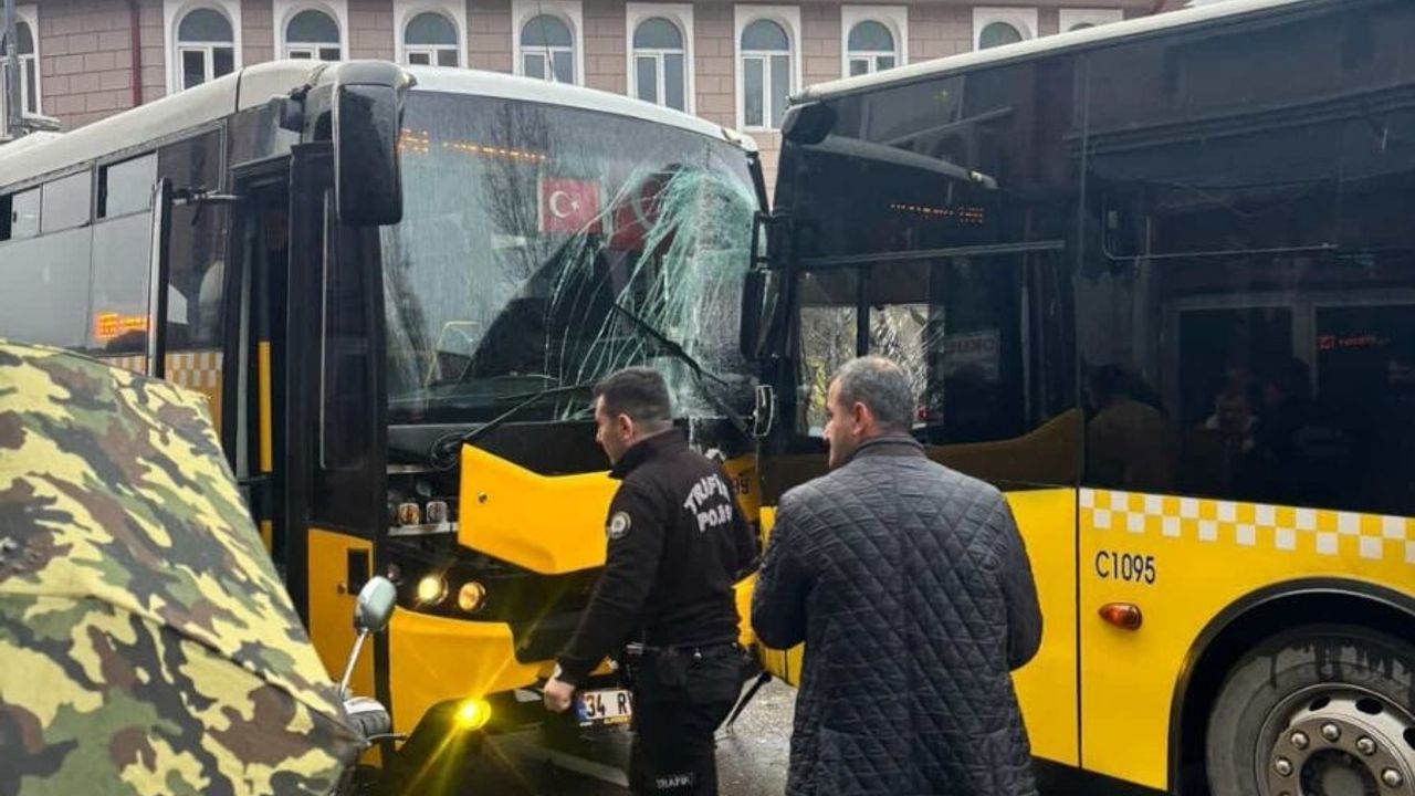 Öte yandan kazaya ilişkin çevredeki bir iş yerinin güvenlik kamerasına yansıyan görüntüler ortaya çıktı. Görüntülerde, karşı yönden gelen iki İETT otobüsünün çarpışma anı net bir şekilde görülüyor.